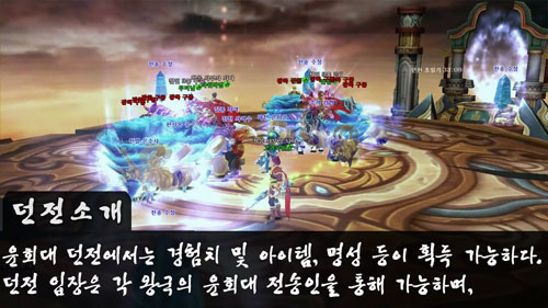 ... 3관문 던전은 24시간 개방되며 캐릭터 레벨에 따라 총 7종의 각기 다른 던전으로 나뉘어 있으며 일주일에 총 21회까지 입장이 가능하다. 윤회대 던전은 캐릭터의 레벨과 시간에 따라 입장이 제한되는 던전이다. 특정 장소에서 끊임없이 밀려오는 몬스터를 퇴치해야만 하는