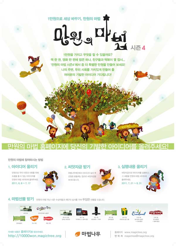 ... 참가 신청은 오는 7월 17일까지 홈페이지를 통해 선행 아이디어를 등록하면, 심사를 통해 1500명에게 씨앗자금(활동자금) 만원을 전달하는 방식으로 진행된다. 씨앗자금을 받은 참가자들은 만원으로 자신이 할 수 있는 활동을 펼치면 된다. 만원을 직접 사용해 감동적인 사연을