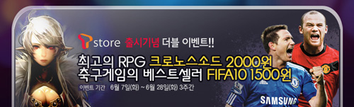 ... 'FIFA10'은 70% 할인된 1500원에 다운로드 받을 수 있으며 추첨을 통해 던킨도너츠의 커피&도넛 세트 기프티콘을 총 50명에게 증정한다. '크로노스 소드'는 EA모바일의 액션RPG로 자신의 플레이 스타일에 맞추어 능력치와 특성치의 분배가 가능해 자신만의 캐릭