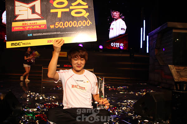 ...영. 호! 이날 경기는 압도적인 경기 운영을 보여주며 김명운의 모든 전략을 차단하며 이영호만의 자신감 넘치는 병력 운영이 돋보였다. 다음은 'ABC마트 MSL' 결승전의 승자가 결정된 후 현장의 이모저모를 모아봤다