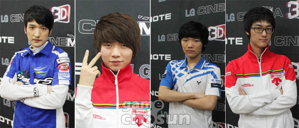 ... 13일 열리는 4강전에는 '황태자' 문성원(슬레이어스)과 '해병왕' 이정훈(프라임)이, '서울대테란' 최성훈(프라임)과 '맹덕어멈' 김정훈(oGs)가 각각 결승행 티켓을 놓고 대결을 펼친다. ▲ 4강 진출자 4인방 좌측부터 문성원, 이정훈, 김정훈, 최성훈 팀 리