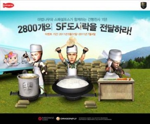 ... 이용자들은 자신의 게임머니나 게임 플레이를 통해 모은 '건빵천사 별사탕'을 기부, 도시락 모으기에 참여할 수 있다. '건빵천사 별사탕' 300개당 1개의 도시락이 적립되며, 목표치인 2800개가 달성되면 이벤트는 조기 종료되게 된다. 기부에 참여한 이용자에게는 게임 내