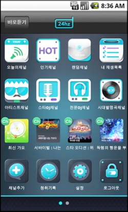 ... '24hz 채널'은 다양한 장르의 음악을 실시간으로 스트리밍해주는 어플로, 사용자는 별도의 선곡이나 조작 없이 자신의 취향에 맞는 채널만을 선택하면 된다. 각각의 채널들은 유명 뮤지션을 비롯해 음악평론가, 칼럼니스트는 물론 일반 사용자들이 선곡한 음악으로 구성돼 있다.