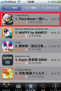 ... 8일, 컴투스는 스마트폰용 액션 게임 '서드 블레이드'가 출시 20여일만에일본 앱스토어 전체 유료 앱 인기순위 1위 자리에 이름을 올렸다고 밝혔다. 이에 따라 '서드 블레이드'는 유료게임 전체와 액션 및 RPG 부분에서도 모두 인기순위 1위를 차지, 3관왕의 영광을 얻게됐