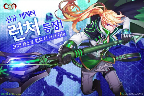 ... '런처'는 원거리 공격에 강점을 보이며 ‘천공의 일격’, ‘폭발사격’ 등의 스킬을 사용한다. 게이머들은 36개의 퀘스트를 통과시 해당 캐릭터로 전직할 수 있다. ‘수호의 힘’은 캐릭터의 방어력을 높여주는 콘텐츠다