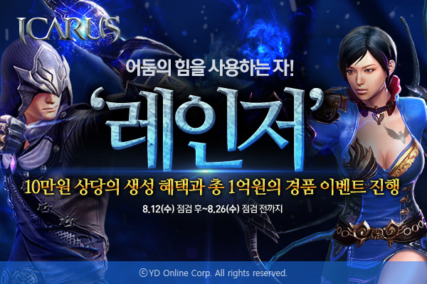 ... 와이디온라인은 오는 26일까지 사전 등록 이벤트를 진행한다. 참여자 전원에게 '레인저' 캐릭터를 30레벨부터 즐길 수 있는 기회를 제공한다. 캐릭터 생성 시 전설 펠로우, 장비 아이템 풀세트 등의 게임 아이템을 얻을 수 있으며, 엘룬 300개, 문화상품권 등 총 1억 원