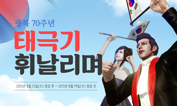 ... 광복을 기념해 특별 제작된 ‘대한민국 만세!’ 스킬도 사용할 수 있다. ‘신기루섬’에 위치한 광복절 행사 안내인에게 태극기를 받아 3명 이상이 모여 ‘대한민국 만세!’ 스킬을 사용하면 3시간 동안 최대 생명력이 815, 경험치 획득량이 8. 15% 증가하는 ‘태극기 사용효과