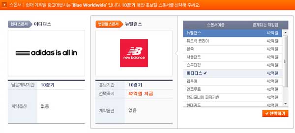 ... 먼저 스폰서 시스템의 도입이란 유저가 실존하는 기업의 브랜드를 구단의 스폰서로 지정하여, 선택한 브랜드의 기업으로부터 구단운영자금을 지원받는 형태로 현실 속의 프로스포츠에 존재하는 스폰서십을 게임으로 구현한 시스템이다. 이 시스템을 통해 유저들은 네이버 코인(캐시)으로 광