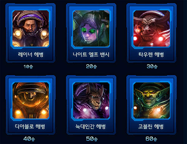 ... PC방에서 1대1 혹은 팀플레이를 진행해 10승을 할 때마다 배틀넷 계정의 프로필 페이지에서 보이는 초상화 가운데 특별함을 갖는 이미지가 제공되는 것. 일명 'Must Have 아이템 초상화 6종 세트'라 명명된 이 초상화는 10승 시 레이너 해병, 20승 시 나이트엘