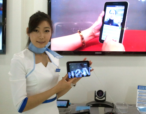 ... 이 솔루션은 갤럭시 탭에서 프리미어 급 HD 영상/음성을 제공함으로써 이동 중에도 상대와 만나서 대화하는 것처럼 선명한 영상을 제공하여 커뮤니케이션 효과를 극대화할 수 있으며, 사용자가 매뉴얼을 보지 않고도 바로 사용할 수 있도록 단순하고 편리한 인터페이스를 제공한다는 것이