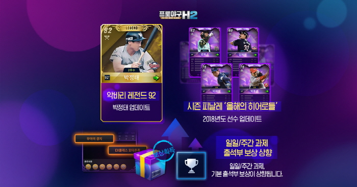 ... 가장 높은 ‘EX 등급’ 선수로는 김재환(두산 베어스), 박종훈(SK 와이번스), 이재학(NC 다이노스), 로하스(KT 위즈)가 선정되었다. 내일부터 ‘18년도 배지와 브로치도 제작 가능하다. 롯데 자이언츠의 박정태(’92)가 레전드 선수카드로 등장한다