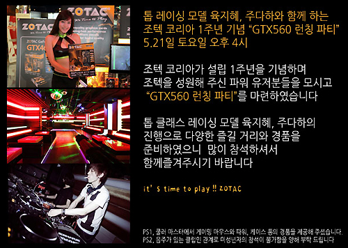 ... 김성표 대표는 "설립후 지난 1년간 고객여러분께서 보내주신 커다란 성원에 감사드리며, 또한 NVIDIA의 고성능 신제품인 지포스 GTX 560 시리즈를 체험해 볼 수 있는 이번자리에는 하드웨어 커뮤니티 여러분들을 초대하여 제품 발표와 함께 그 동안의 조텍코리아의 발자취와