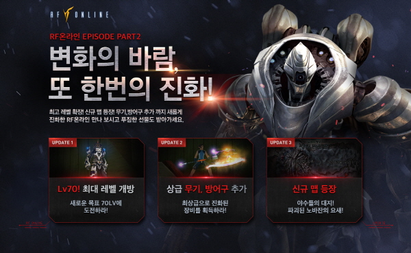...다음게임은 'RF온라인'의 업데이트를 기념한 3가지의 이벤트를 준비했다. 먼저, 11월 12일까지 신규 서버 '라르크'에서 종족 및 클래스 별로 가장 높은 레벨을 달성한 랭커 1위에게 50만원 상당의 기프트 카드를 증정하며, 상위 10위까지의 이용자들에게 각종 게임 아이템을 선물한
