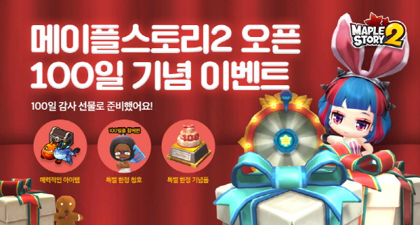 ...한편, 넥슨은 메이플스토리2 공식 페이스북에 서비스 100일을 기념하는 특별 축전 이미지를 깜짝 공개했다. [조상현 기자 neulpeum@chosun. com] [gamechosun