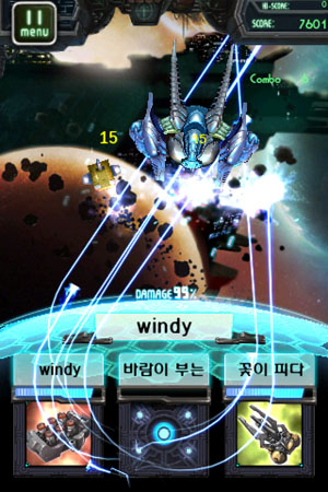 ... 우선 '워드포스'는 외계인 우주선이 아군의 기지를 침범하지 못하도록 적의 우주선을 미사일, 빔 등의 무기로 격추시키는 슈팅 게임이다. 제시되는 영어단어와 맞는 정답카드를 손끝으로 끌어당겨 조준해서 발사하는 방식이며, 정답카드만 미사일이 발사하기 때문에 각 단어의 음성, 영문