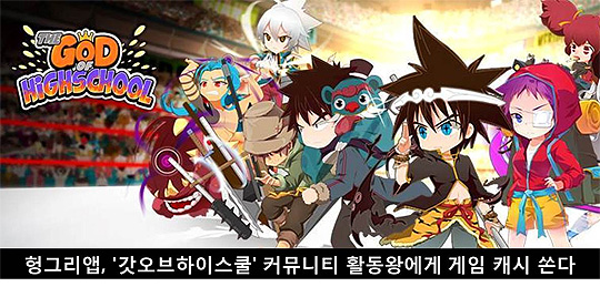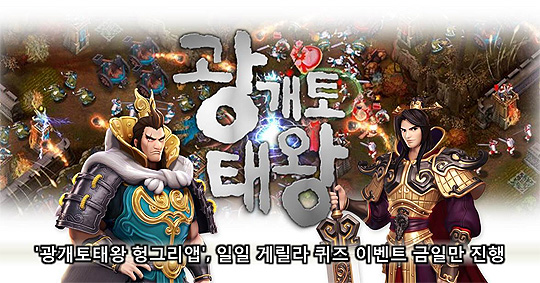 ... 이번 이벤트는 '게릴라 퀴즈 이벤트'로 '광개토태왕 헝그리앱' 커뮤니티에 이벤트 기간 동안 제시된 퀴즈에 답안을 작성하면 추첨을 통해 헝그리앱 내에서 현금처럼 사용할 수 있는 밥알 포인트를 지급한다. 본 이벤트는 금일(7일)만 진행되며 자세한 내용은 '광개토태왕 헝그리앱' 커뮤