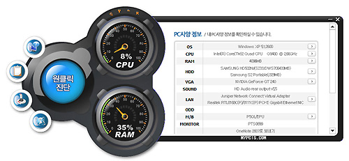 ... 이 프로그램을 사용하면, 종합적인 PC에 대한 지식이 없어도 진단을 통해 현재 하드웨어적인 문제점이 없는지 바로 알 수 있고, 소프트웨어적인 문제점도 손쉽게 해결해 준다. 또한, 진단된 정보를 토대로 사용자가 설정한 게임과의 요구사양을 비교해 주거나, 인터넷 작업환경의 최적화