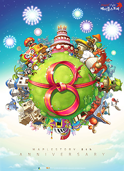 ... 이 8주년 특별 아이템의 대부분은 게임 내에서 얻는 8주년 주화 아이템과 팔락조의 날개를 통해 획득할 수 있다. 또한 아이템팟에서 단풍나무 분재를 키우거나 메이플월드에 나타나는 팔락조를 잡으면 다양한 보상을 제공하고, 지정된 8주년 이벤트 미션을 모두 달성하면 8주년 훈장을 지