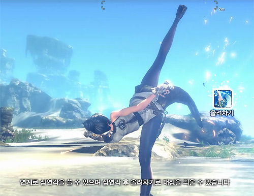 ... 검사는 '비연검-돌진-올려베기-비상'으로 조합된 연속기로 원거리에서부터 빠르게 접근하며 스킬을 콤보로 사용한다. 권사는 '횡이동-삼연각-올려차기'로 적의 공격을 회피 후 강력한 반격을 가하는 모습이다. 거대한 도끼를 사용하는 역사는 '철벽-밀치기-내다꽂기' 연속기로