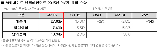 ... 2분기 온라인게임 해외 매출은 온라인게임 '이카루스'의 일본 상용화 서비스로 소폭 증가했으나, 국내외 모바일게임 수익이 감소하면서 실적 부진으로 이어졌다. 하반기 위메이드는 모바일게임 개발사로 전사 역량을 집중하고, 글로벌 서비스와 2~3종의 신작 게임을 출시할 계획이다.
