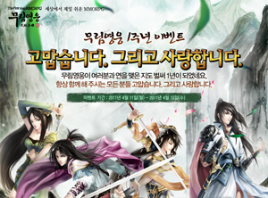 ... 더불어 오는 13일부터 27일까지 무림영웅 이벤트를 실시해 기간 동안 던전 추가 입장시 황금이 소모되지 않으며, 사냥시 경험치를 2배로 높였다. 또, 던전에서 전투시 7종의 광석을 랜덤하게 획득할 수 있으며, 광석을 종류대로 모아 각 수도 NPC에게 가져가면 보물 상자를 보상받