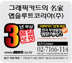... 이외 엔비디아 퍼스트 파트너 브랜드인 게인워드(Gainward) GTX560 이상 급 및 ATI 대표 브랜드인 HIS HD5770 이상 급 제품에 한정적으로 제공된다. 강동수 앱솔루트코리아 이사는 "1년 전 많은 기대와 우려속에서 시행되었던 그래픽카드 단일 제품의 전국무상출장