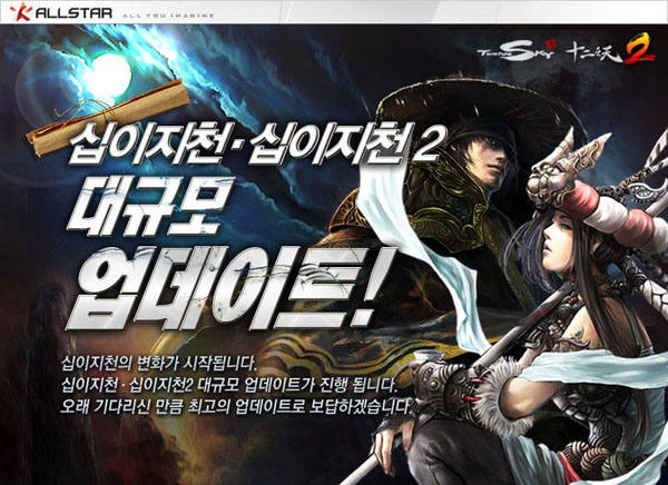 ...KTH(대표 서정수)올스타는 무협 게임 '십이지천2'와 '십이지천'에서 2011년 상반기에 진행될 업데이트 내용을 8일 공개했다. ·먼저 '십이지천2'에서는 4월부터 오는 7월까지 약 4개월 동안 4대 문파 시스템과 항마 이벤트, 전략형 세력 무기 시스템 등이 신설돼 전체적인
