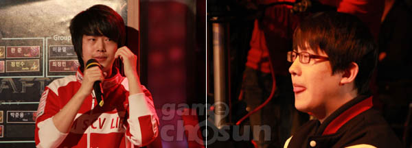 ... 황강호는'지스타2010' 올스타전 우승자인 한준(제넥스)에게 선택됐고 임재덕은이번 대회 우승을 목표로 하고 있는한규종(TSL)에게 선택됐다. ▲ 지난 시즌 결승에서 격돌한 장민철(좌)과 박성준(우)은 같은 자세로 이야기를 나누고 있다. A조 : 1경기 장민철(P) vs