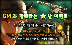 ... 또, 이벤트에 10회 이상 참여한 유저에게는 게임 아이템인 금망치를 지급할 예정이다. 이번 GM과 함께하는 별난 이벤트는 컬쳐스 온라인(cultures. no3games