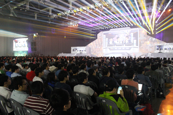 ...결승전을 보기 위해 현장을 찾은 관람객은 약 2000여명으로, 경기 시작에 앞서 자리를 꽉 메우며 분위기를 고조시켰다. 한편, 관람객 전원에게는 게임 내에서 사용할 수 있는 샨도 일리단 스킨 세트와 함께 히어로즈 영웅 추첨 코드가 담긴 핫식스가 무료로 주어진다. 또 추첨을 통해