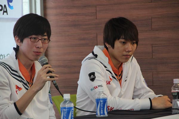 ... ▲ '우리의 각오를 보여주겠다!' KT와 SK 감독, 선수가 한자리에 ▲ '결승전도 제가 맡겠습니다' 김정민 캐스터의 모습. ▲ 'KT를 이길 수 있어!' 밝게 웃는 박용운 감독과 sk 선수들. ▲ '이영호는 우리가 꺾는다!' 정명훈과 도재욱