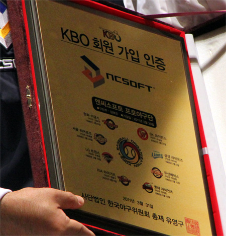 ... 이 행사에는 구단주인 김택진 대표와 박완수 창원시장이 참석해 엔씨소프트와 창원시간 야구단 관련 협약서 체결식도 함께 진행됐다. 유영구 KBO 총재는 환영사에서 "프로야구 역사 30년 역사에 뜻 깊고 새로운 역사가 쓰여지는 오늘"이라고 말하고 "엔씨소프트의 9구단이 야구팬의 기