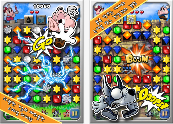 ... 스마트폰용 게임 특유의 짧은 플레이타임의 한계를 극복하기 위해 10개의 특색 있는 성과, 100판이 넘는 레벨, 클래식, 인피니티 등의 다양한 게임 모드를 도입해 몰입도를 높였다. 또한 블록을 맞추면 나오는 각종 매직 블록을 사용해 늑대들을 한꺼번에 퇴치하면서 느끼는 짜릿함,