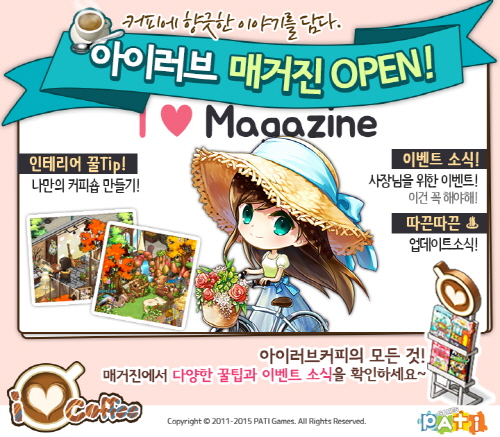 ... 해당 시스템은 튜토리얼을 거친 후 매거진 거치대를 획득한 유저라면 누구나 활용할 수 있다. 파티게임즈는 추석을 맞아 '아이러브커피'의 유저를 대상으로 넉넉한 보상을 제공하는 이벤트를 실시한다. 먼저, 10월 8일까지 원두 수확, 커피 메뉴 생산 및 판매 등 가게를 운영한 뒤 보상