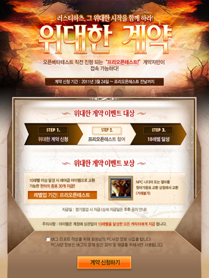 ... 테스트 일정은 24~25일,28~29일은 16시부터 24시까지, 26~27일은 24시간동안 참여할 수 있다. 테스트 시작과 함께 진행되는 CBT 기념 이벤트를 통해 40레벨에 도전에 성공한 유저와 10, 20, 30 레벨에 각각 도달한 유저들에게는 추첨을 통해 백화점 상품권,