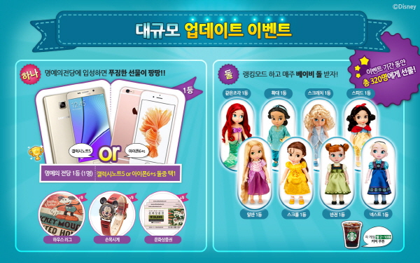 ...유저들은 매주 각 스테이지별 랭킹에 따라 '훈장'을 받을 수 있으며, 수집한 '훈장'의 등급에 따라 보상이 지급된다. 특히 '고급 훈장'을 많이 수집한 상위 모험가 100명에게는 '명예의 전당'에 이름이 등록되는 혜택이 주어진다. 이와 함께 게임을 플레이 할 때마다 경험치를 획득
