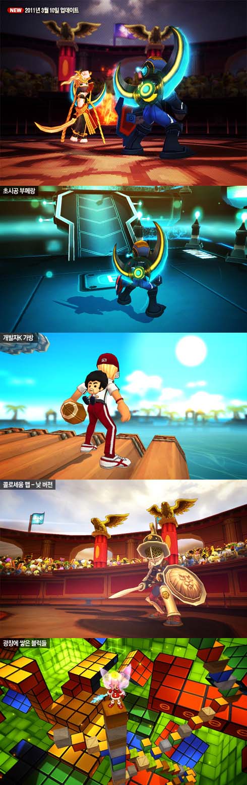 ... 원하는 위치에 자유롭게 블럭을 쌓으며 지형을 변형할 수 있어 자유도가 높고 자신만의 기발하고 독창적인 공간으로 만들 수 있어 지금까지와는 차별화된 새로운 플레이를 즐길 수 있다. 주기적으로 업데이트 되는 레어장비의 경우 거대한 초승달 모양의 레어장비 ‘초시공 부메랑’과 ‘개발자