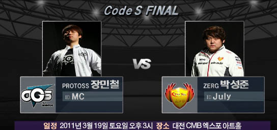 ... 경기 방식은 24명이 8개조로 편성돼 코드A 1명과 코드S 조 3위와 4위가 한 조로 편성된다. 코드A 선수와 조3위 선수가 대결을 펼쳐 승자는 코드S가 되고 패자는 조4위 선수와 2차전을 펼친다. 이경기의 승자는 코드S, 패자는 코드A로 강등(혹은 잔류)하게 된다