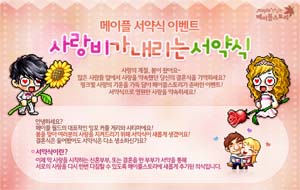 ... 넥슨은 ‘서약식’ 콘텐츠 도입을 기념해 3월 10일부터 4월 10일까지 결혼 후 30일, 100일이 지나지 않아도 특정 퀘스트를 완료하면 서약식을 진행할 수 있는 이벤트를 실시한다. 한편, 화이트데이를 기념해 솔로들을 위한 특별 이벤트도 펼쳐진다. 3월 10일부터 4월 20일