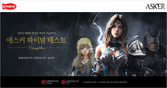 ... 8월 1주 신작은 파이널테스트를 앞두고 있는 네오위즈게임즈의 '애스커'가 유일하다. 애스커를 시작으로 8월에는 파이널판타지14가 14일에 공개시범테스트가 예정돼 있다. 애스커의 파이널 테스트는 공개서비스 전 최종 점검을 위한 마지막 단계로, 오는 8월 4일부터 6일까지