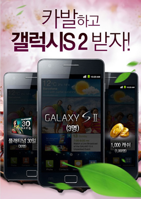 ... 갤럭시S 2 3대를 비롯해 아이템 드롭율 증가, 경험치 상향 등의 혜택을 제공하는 프리미엄 서비스 플래티넘 30일권 30명, 보너스 1000캐쉬 1000명 등 총 1033명을 추첨해 신규가입자에게 혜택이 제공된다. 이벤트와 관련된 자세한 내용은 공식 홈페이지(www. cabal