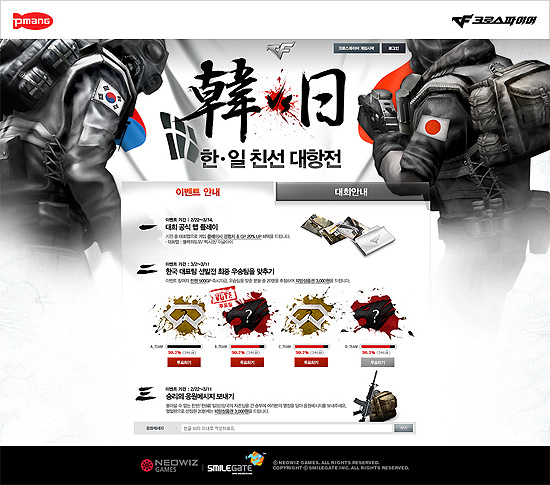 ... 대회 참가 자격은 ‘크로스파이어’ 하사 이상의 계급을 가진 게이머이며, 5명이 한 팀이 되어 홈페이지를 통해 2월 22일까지 신청하면 된다. 26일부터 시작되는 온라인 예선을 통과한 4개 팀은 오는 3월 12일 온게임넷 스튜디오에서 진행되는 국가대표 선발전과 국가 대항전을 통