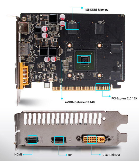 ... 커스터마이징 가능한 셰이더들은 조텍 지포스 GT 440 시리즈가 어도비 플래시 기술에 기반을 둔 고화질 인터넷 비디오스트리밍 가속이 가능하게 함은 물론 프레임드롭이나 멈칫거림을 모두 잡을 수 있게 한다. 조텍 지포스 GT440 시리즈는 512MB와 1GB DDR5메모리의 두