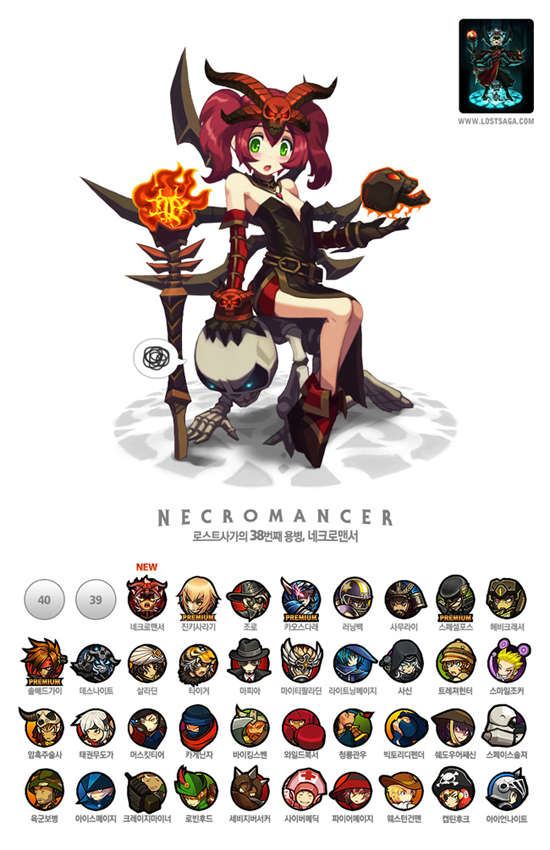 ... 해골 거미 3마리를 소환해 상대를 중독시키거나 해골 버서커 소환으로 적을 멀리 날려버리는 등 주로 어둠의 세력을 소환하는 기술에 능하며, 퍼밀리어 6마리를 조종해 공격하는 스킬 또한 강력하다. 이와 더불어 다가오는 설을 맞아 자수한복과 신묘년 복주머니, 널판 아이템 등 다양한