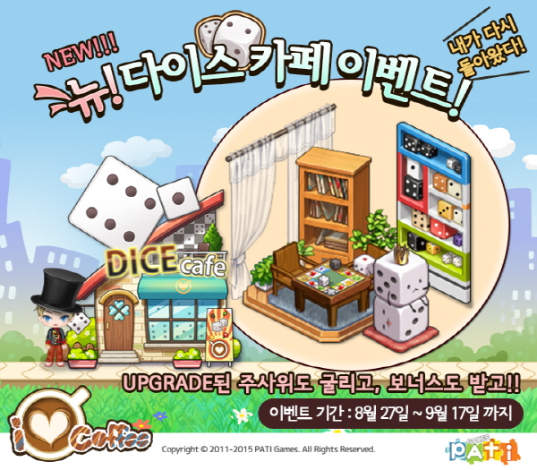 ...한편, 파티게임즈는 '뉴 다이스 카페' 이벤트를 기념해 '내추럴 힐링' '과자나라' '체리블로썸' 테마의행운상자를 추가했다. 또한 오는 9월 10일까지 행운상자의 희귀 아이템 획득 확률을 5배 상향 조절하는 이벤트를 실시한다. [조상현 기자 neulpeum@chosun