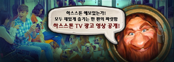 ... 먼저 '개들을 풀어라'편에서는 기욤과 줄리안이 친구로 등장, 기욤은 버스에서, 줄리안은 지하철에서 하스스톤을 플레이하며 재미있는 맞대결을 펼치는 상황을 연출했다. 또 다른 광고 영상인 '양변이'편 역시 기욤과 줄리안이 등장, 각각 버스와 지하철에서 하스스톤을 즐기며 다른 전략을
