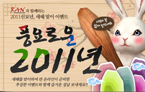 ... 먼저 2011년! 이것만은 꼭 이루자!는 홈페이지의 이벤트 페이지를 통해 올 한해 '란온라인'에 바라는 소원을 응모하면 기획의도에 맞는 참신한 소원을 제시한 총 11명의 유저에게 세뱃돈 1만1000캐시를 지급하는 내용이다. 그리고 이벤트 기간 동안 게임 내의 Q-box에서 나오