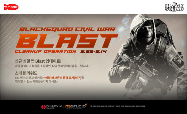 ...스나이퍼부터 라이플, SMG 계열까지 모든 총기를 사용하기 적합한 낮은 난이도로 제작된 것이 특징으로, 안정적인 플레이를 선호하는 이용자들에게 안성맞춤 맵이다. 네오위즈게임즈는 신규 맵 오픈을 기념해 오는 9월 14일까지 블라스트 소탕전 이벤트를 진행한다. 매일 섬멸 모드를 1회