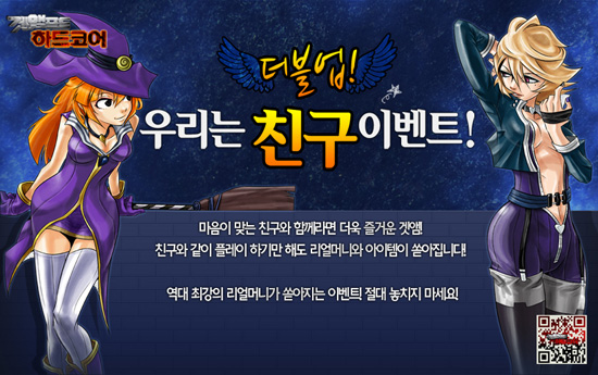 ... 게이머가 친한 친구로 등록한 친구와 같은 방에서 함께 게임 플레이를 할 경우 PTS 3000점 당 RM(리얼머니) 100원과 이벤트 쿠폰 1장이 지급되고 쿠폰을 모아 아이템으로 교환할 수 있다. 친구 등록은 본인이 할 경우 1명만 가능하며 다른 친구가 본인을 친구 등록하는 경우