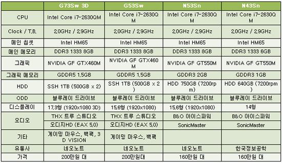 ... ↑ 아수스 G73 3D 이번에 최초 출시되는 아수스 2세대 프리미엄 노트북에 탑재된 2세대 인텔 코어 프로세서 샌디브릿지는 CPU와 GPU가 하나로 통합되었을 뿐만 아니라 이 둘간의 유기적인 자원 공유로 1세대 제품 대비 빠른 응답성과 그래픽 성능이 30% 이상 향상됐다. 아